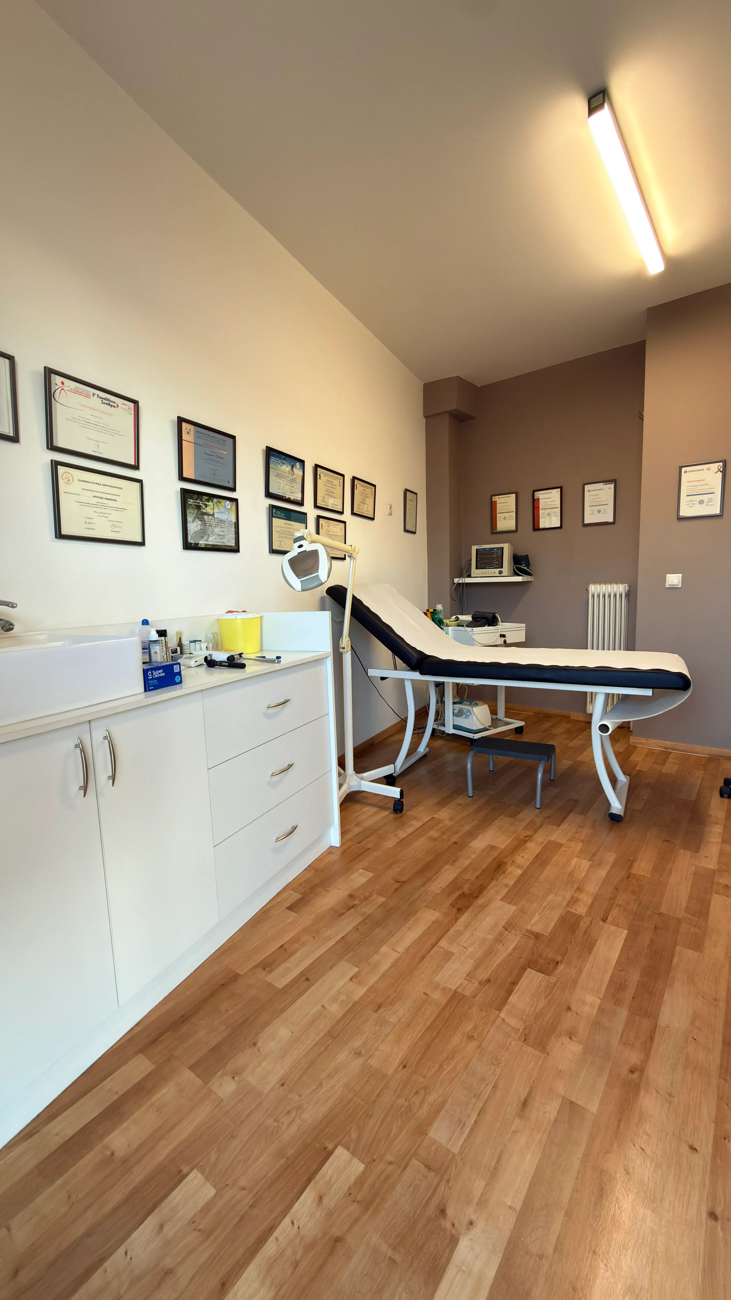 Ο χώρος έχει σχεδιαστεί με γνώμονα την άνεση, την εργονομία και την εμπιστοσύνη, ενώ πληροί πλήρως τις προδιαγραφές υγιεινής και ασφάλειας ενός σύγχρονου παθολογικού ιατρείου.